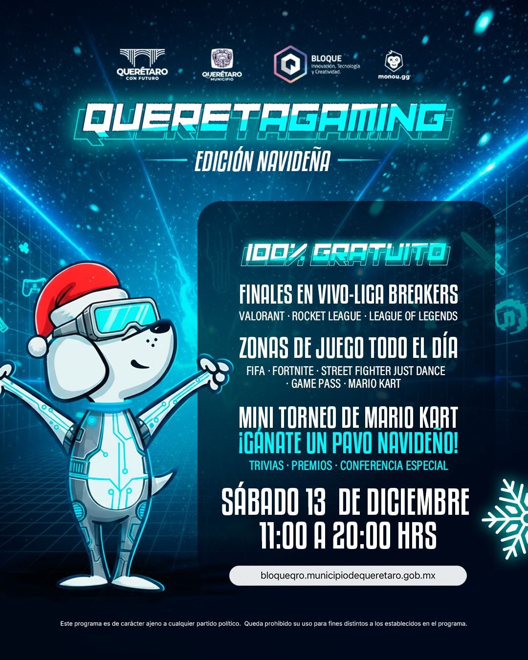 15 de diciembre de 2025, Querétaro, Qro. – El Municipio de Querétaro, a través del Centro de Innovación y Tecnología Creativa BLOQUE, presentó el Queretagaming Navideño, un evento gratuito que se realizará el 13 de diciembre y que reunirá a la comunidad gamer con torneos, trivias y actividades familiares en un solo espacio.