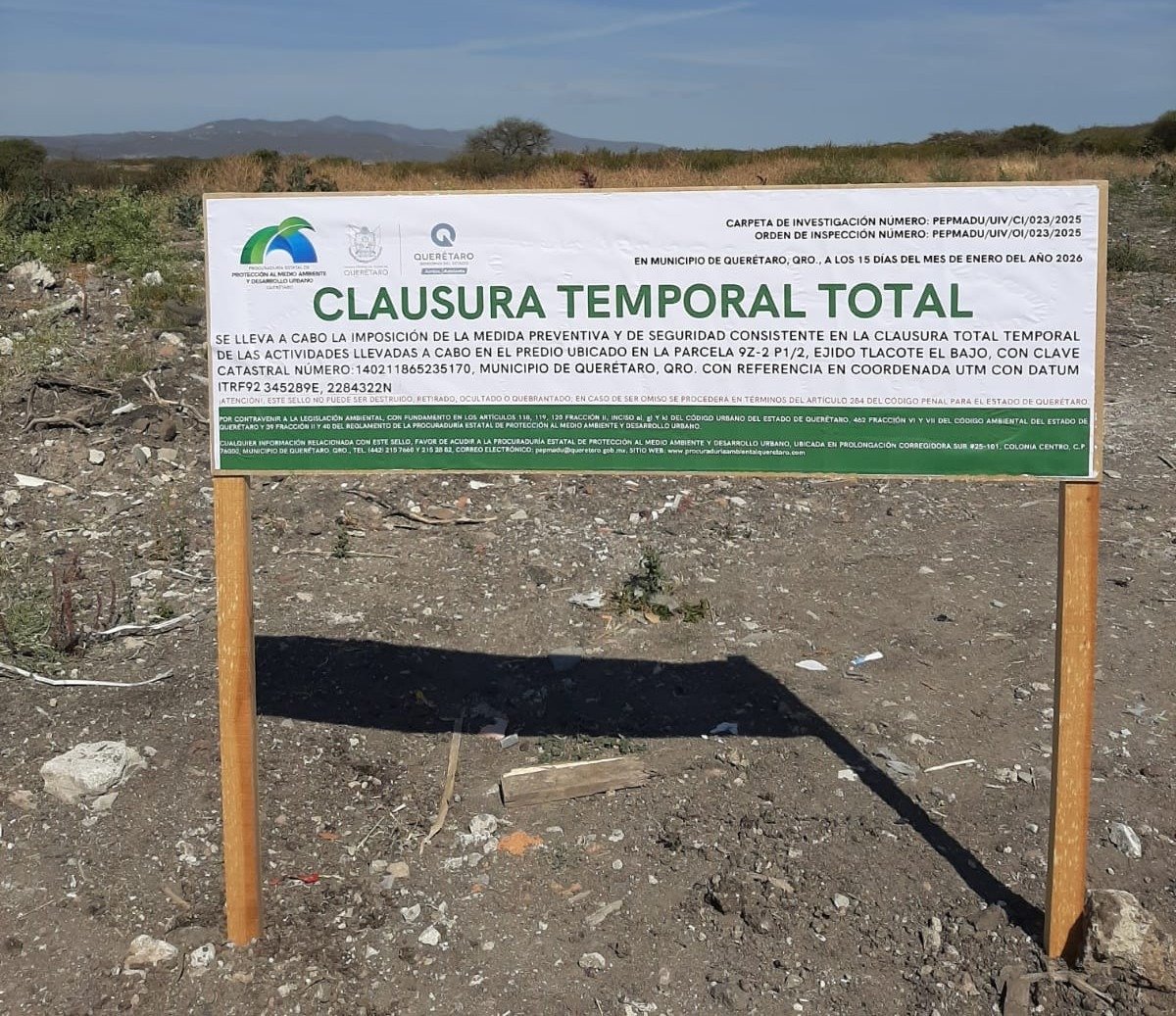 Querétaro, Qro., 16 de enero 2026 – La Procuraduría Estatal de Protección al Medio Ambiente (PEPMADU) clausuró un tiradero clandestino ubicado en la colindancia de la colonia Ciudad del Sol, en el municipio de Querétaro, tras atender denuncias ciudadanas relacionadas con la disposición irregular de residuos.